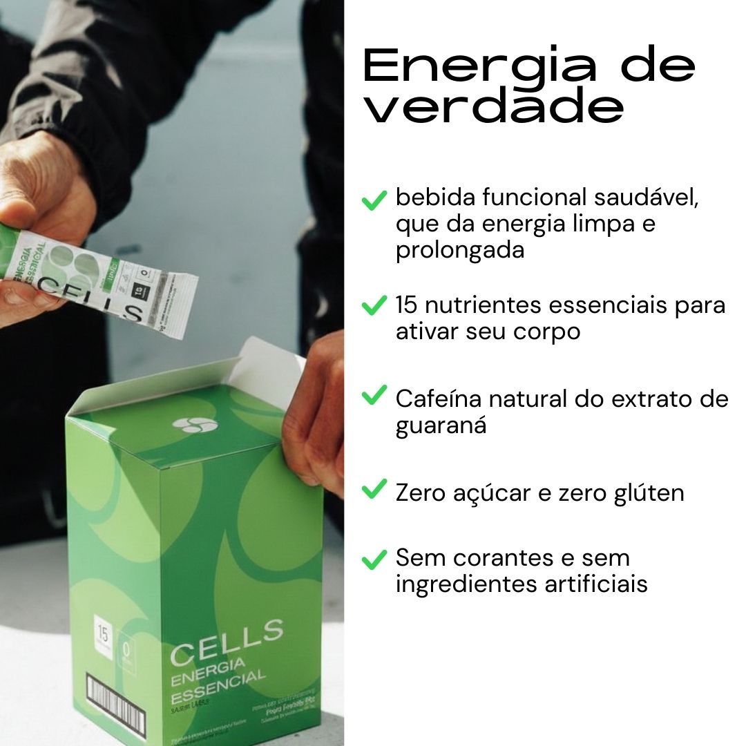 "O Cells é um verdadeiro aliado para quem leva a saúde a sério. A combinação de antioxidantes, vitaminas e ativos naturais ajuda na performance e recuperação muscular."